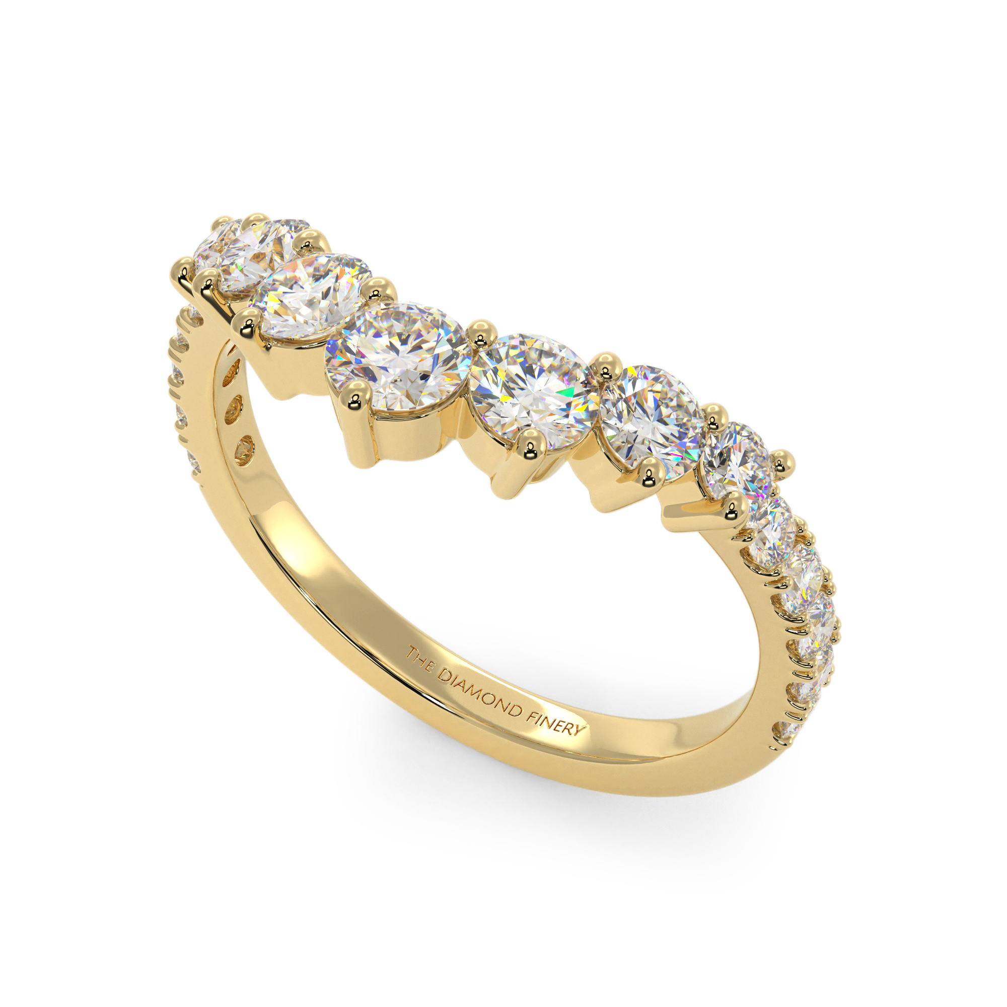 The glimmer of several stones and a fun V-shape characterize this statement ring. It comes with a pavé of diamonds and may be set in yellow gold, white gold, or rose gold.